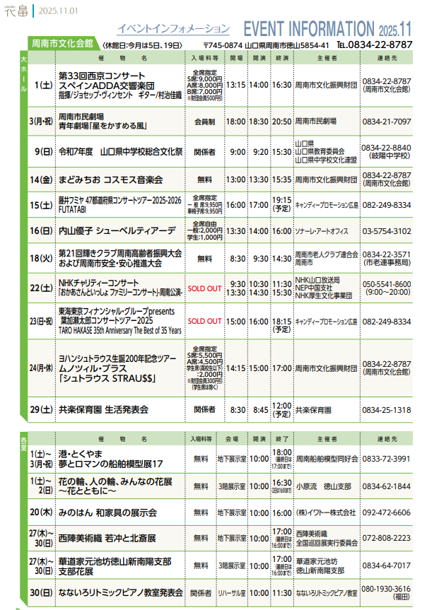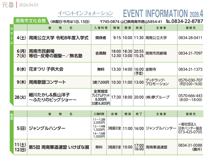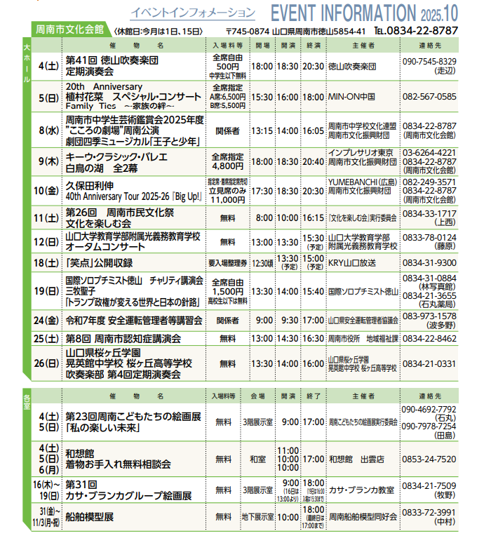 TEL.0834-22-8787 /FAX.0834-22-8790 休館日.毎月第1・3水曜日及び12/29〜1/3